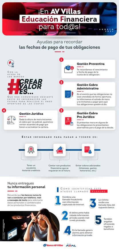 - Permitir a sus clientes la consulta gratuita, al menos una vez al mes, por los canales que el Banco AV Villas señale, del estado de sus productos y servicios.